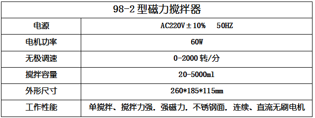 產品名稱:強磁力大功率磁力攪拌器98-2